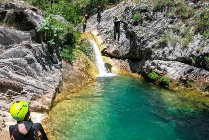 In addition to walking through water and swimming, this canyoning involves going down a rope and jumping off rocks, so it is also recommended for family groups. There are lots of fun spots for jumping into rock pools and rock slides down the waterfalls, as well as some challenging rappels down waterfalls.