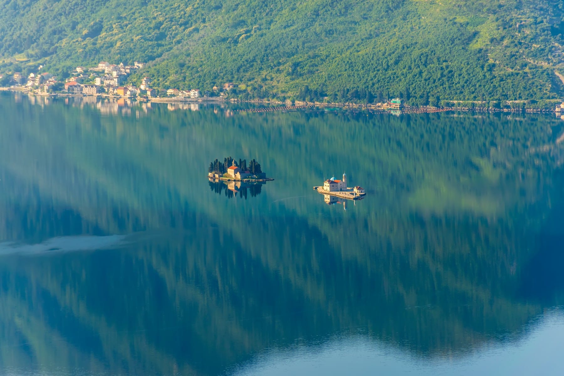 In front of this town are located two picturesque islands – Our Lady of the Rocks and Saint Djordje. Our Lady of the rocks is an artificial, boat-shaped island with the church and the museum opened for visitors. The church contains 68 paintings by Tripo Kokolja, a famous baroque artist from Perast. The church also houses a collection of silver votive tablets and a famous votive tapestry made by Jacinta Kunic – Mijovic, a woman from Perast. She has been embroidering it for 25 years, waiting for her beloved to return from the ship until she became blind.