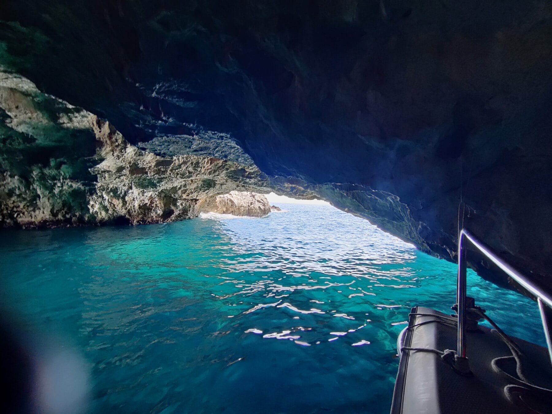 The Pigeon Cave is one of the most beautiful sea caves with a divine location. It’s only 2,5 km seaway from Old Town (3 km from Slovenska Beach – start point), surrounded by beautiful volcanic rocks, picturesque bays and grottoes, untamed beaches, and the route’s crowning achievement, a thrilling passageway cave.